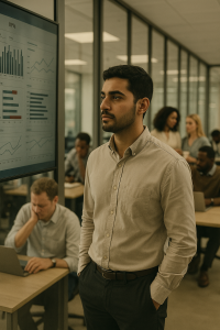 Change control vs wendbaarheidDit keer een mooie uitgebreide introductie van Ingrid. Zij werkt als Change Manager binnen een internationale organisatie waar de sfeer een kruising is tussen corporate structuur en een bruisende startup-energie. Teams zitten verspreid over meerdere landen, met (digitale) vergaderruimtes waar Engels, Nederlands en soms nog een derde taal in één meeting voorbij komen. De druk staat hoog, de ambities zijn stevig, en de overgang naar Agile-werken voelt als een groot kantelpunt waar iedereen net even anders in staat: sommigen vol enthousiasme omdat eindelijk oude bureaucratie wordt losgelaten, anderen met gefronste wenkbrauwen omdat hun vertrouwde systemen worden opgeschud. In die wereld van cultuurverschillen, veranderende rollen en strakker samenwerken loopt Ingrid rond - als degene die de storm mag begeleiden, de weerstand mag vertalen, en teams stap voor stap meeneemt naar een wendbare manier van werken.